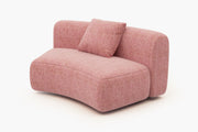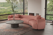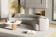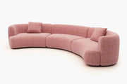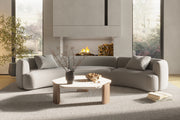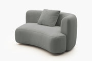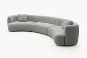 This curved sectional sofa combines graceful lines with plush cushioning for a balance of elegance and comfort. Its enveloping layout breaks away from traditional straight designs, creating a more inviting and conversational seating arrangement—perfect for living rooms, reception areas, or lounges. The wraparound armrests at each end complement the refined fabric texture, making it both a functional piece and a design statement.